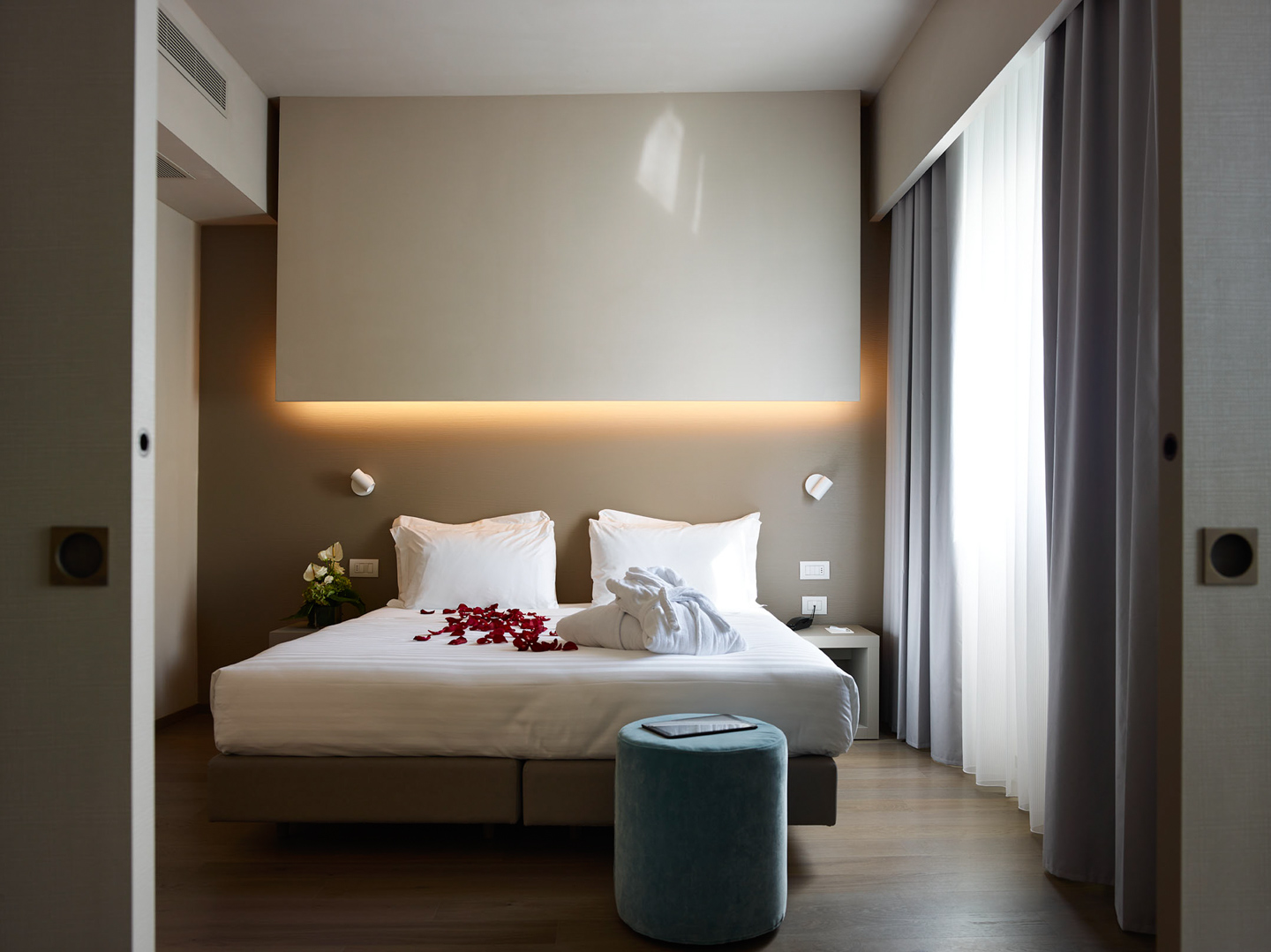 The Glance Hotel, a 4-star luxury hotel in the centre of Florence, was created from the conversion of a building mainly intended for offices dating back to the early 1950’s from a project by the famous architect, Italo Gamberini, completely renovated by the AMDB STUDIO. The originality and versatility of the public spaces, the design of the furnishings with the prevalence of warm and soft colours, make it particularly suitable for the cosmopolitan and hyper-connected traveller.