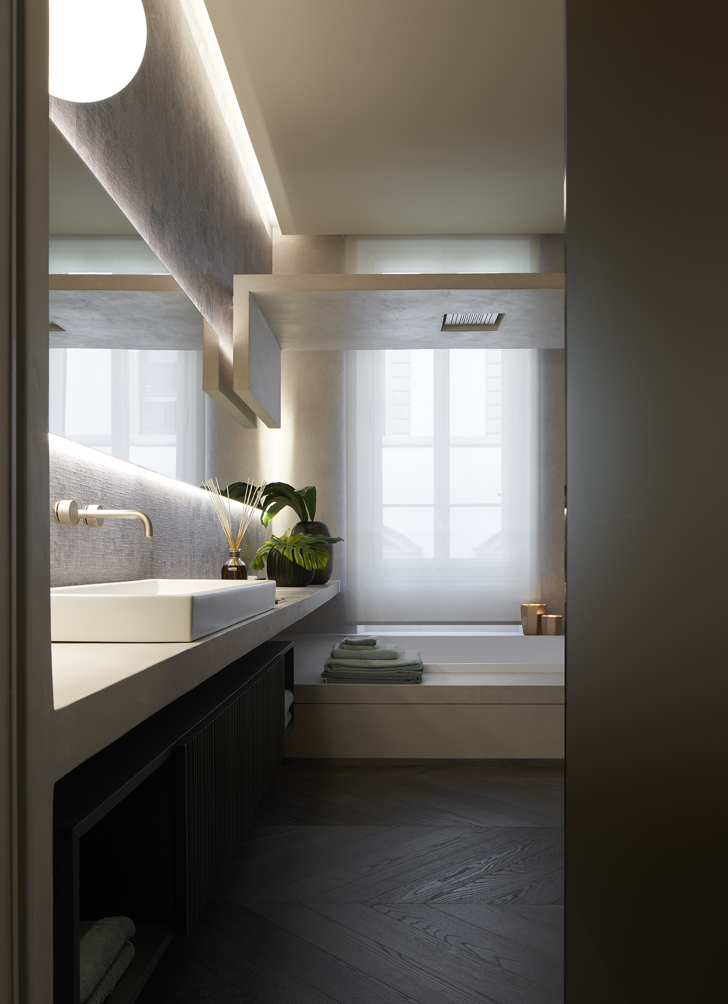 L’intervento si propone quindi di restituire la qualità della progettazione perduta attraverso un linguaggio di architettura contemporaneo che scende nella definizione di ogni singolo dettaglio utilizzando materiali pregiati arricchito dall’inserimento di alcuni pezzi di arredo realizzati maggiori brand del design italiano.